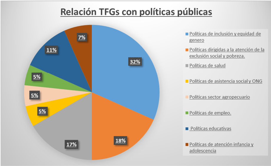 Como hemos explicado anteriormente, en la CTS, SO, UCR, nos hemos acercado a esa visión explicativa de la política pública desde las desigualdades como expresiones de la cuestión social, mediante los trabajos finales de graduación. En estos, las y los estudiantes desarrollan un proceso de investigación donde hacen uso de diferentes teorías, enfoques, metodologías sobre temáticas que responden a las políticas públicas sociales desde el Trabajo Social.